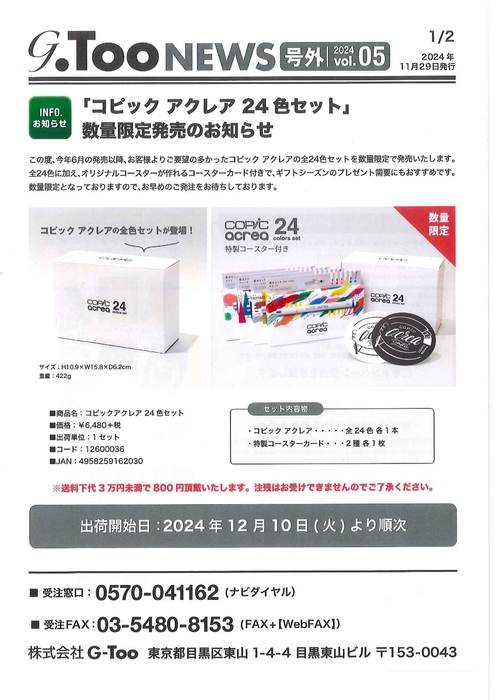 【数量限定】コピック アクレア24色セット発売のお知らせ